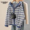 Women's Wool Blend Hooded Color Block Stripe Sweater