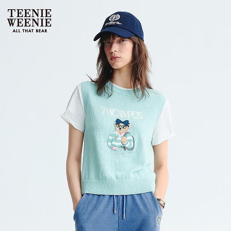 Teenie Weenie Women's Bear Patchwork Short Sleeve Knit Sweater