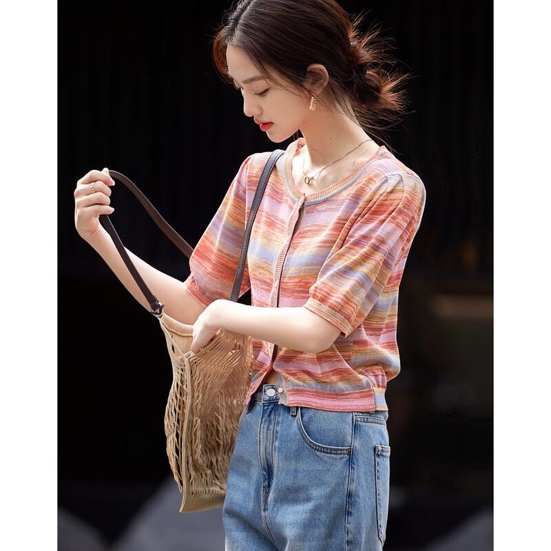 Demana Artistic Gradient Ribbed Knit Short Sleeve Cardigan