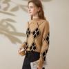 TUHUANG Women's Pure Wool Color-Block Half-High Neck Knit Sweater