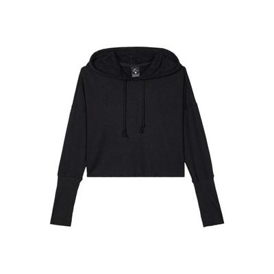 Solid Color Printed Logo Hooded Cropped Sweatshirt for Women In Black