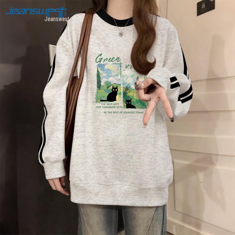JEANSWEST Women's Painted Cat Graphic Loose Fit Sweatshirt