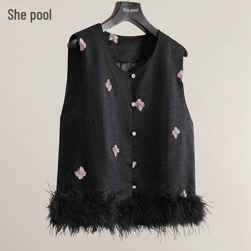 Women's Embroidered Color-Block Round Neck Vest