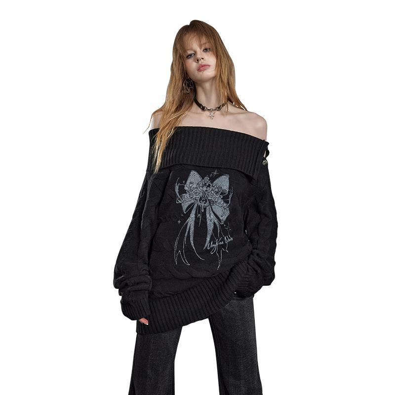 unifree Sweet Cool Bow Print Knit Sweater