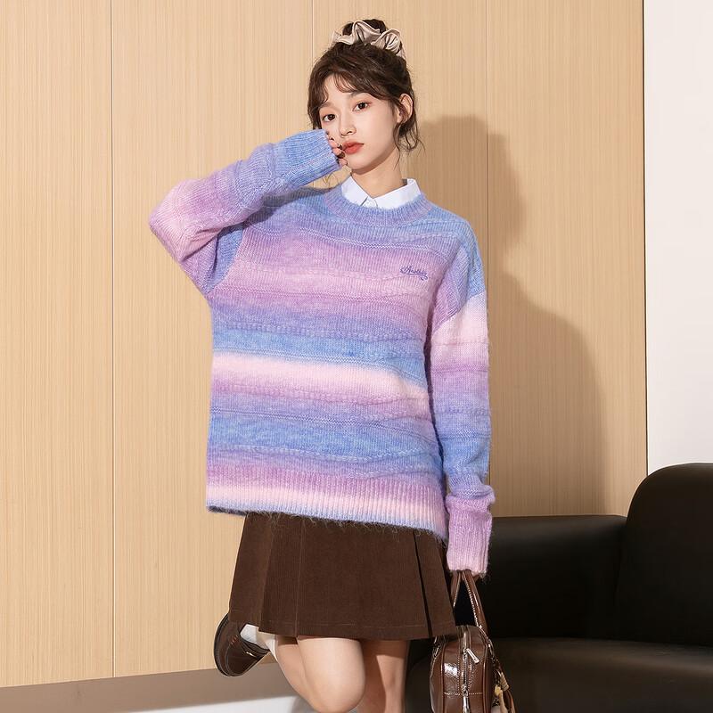 Tangshi Women's Gradient Textured Round Neck Sweater