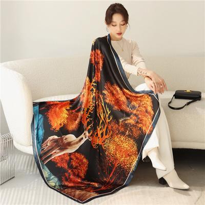Four Season Style 110 * 110 Cm Silk Smooth Encrypted Brocade Large Square Scarf Scarf Thin Shawl Travel Sunscreen