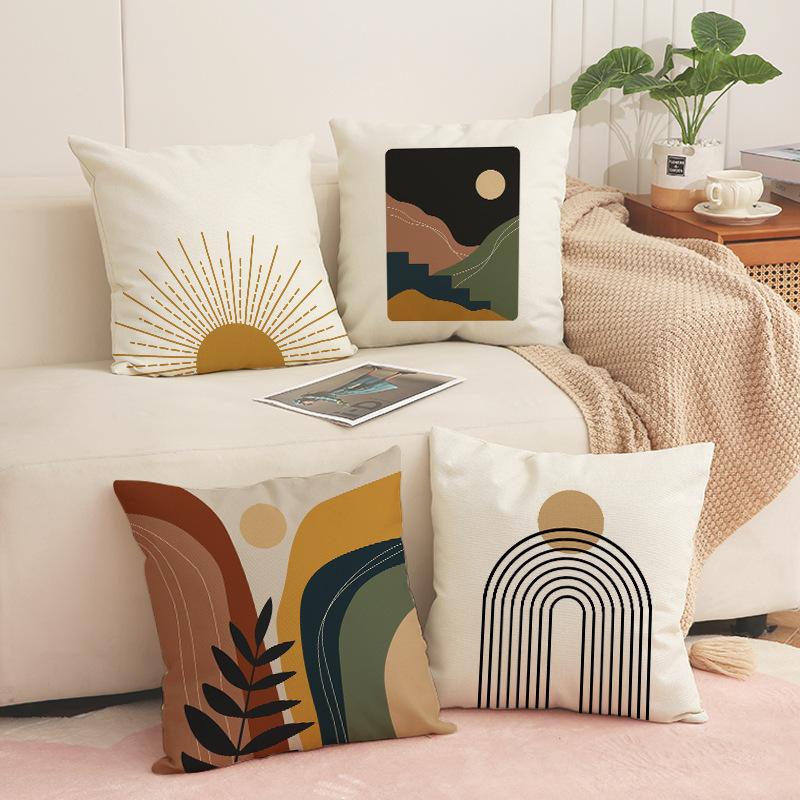 Wind Printed Pillow Case Indoor Bay Window Decoration Square Geometric Cushion Linen Abstract Simple Sofa Pillow