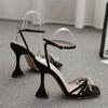 Comemore Elegant Woman Heels Sandals Sexy Peep Toe Rhinestone Butterfly-knot Women's Sandales Transparent High Heels Summer Shoe