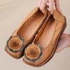 2025 Spring Luxury Cowhide Leather Shoes Woman Handmade Flower Flats Retro Wedged Loafers Ladies Chic Soft Red Dressy Moccasins