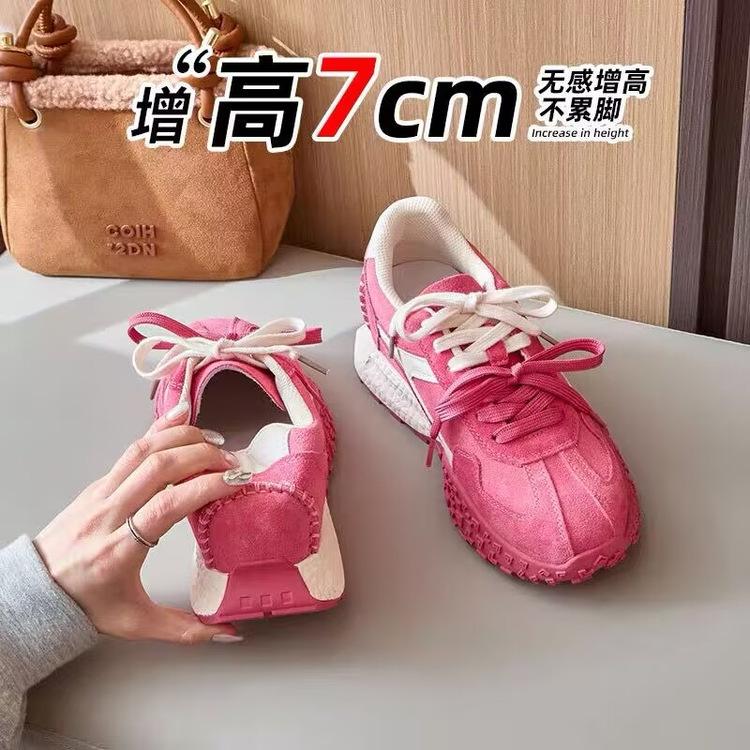 Raspberry Pink Inner Height Increase Forrest Gump Shoes Women's 2025 New Small Platform German Training Shoes Spring and Autumn Fashion Casual Shoes