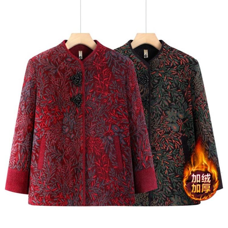Coat Women's Spring and Autumn Woolen Old Lady Winter Clothing Plush Thickened Top Elderly Clothes