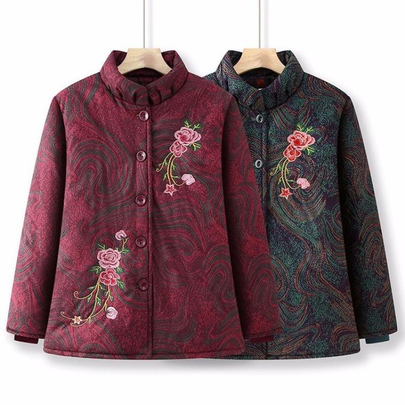 New Wife Winter Velvet Cotton-padded Jacket 0-year-old Embroidered Cotton-padded Jacket Old Clothes Women's Warm Jacket
