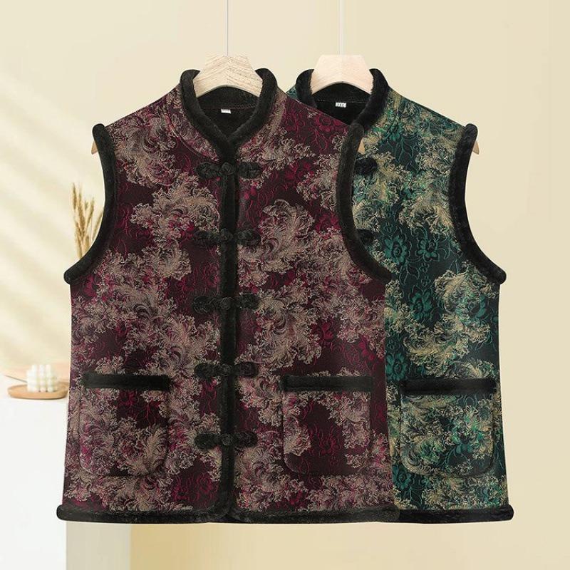 Chinese Vest Warm Autumn and Winter Velvet Thickened Vest Vest Old Lady Coat Winter