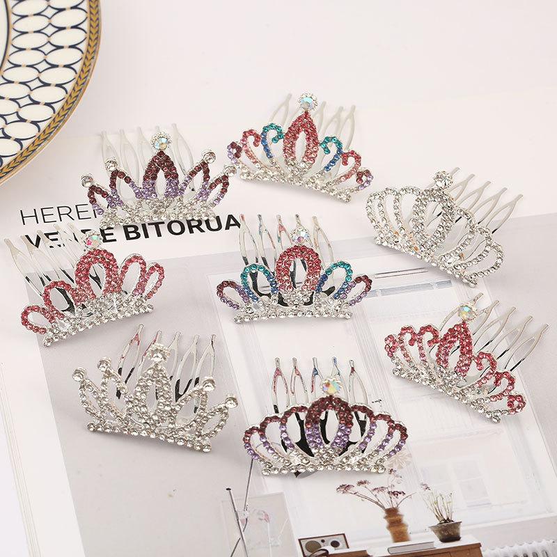 Girls Hair Accessories Mini Crown for Kids Bling Rhinestone Tiaras Hair Combs Princess Diadem Love Heart Shaped Headbands