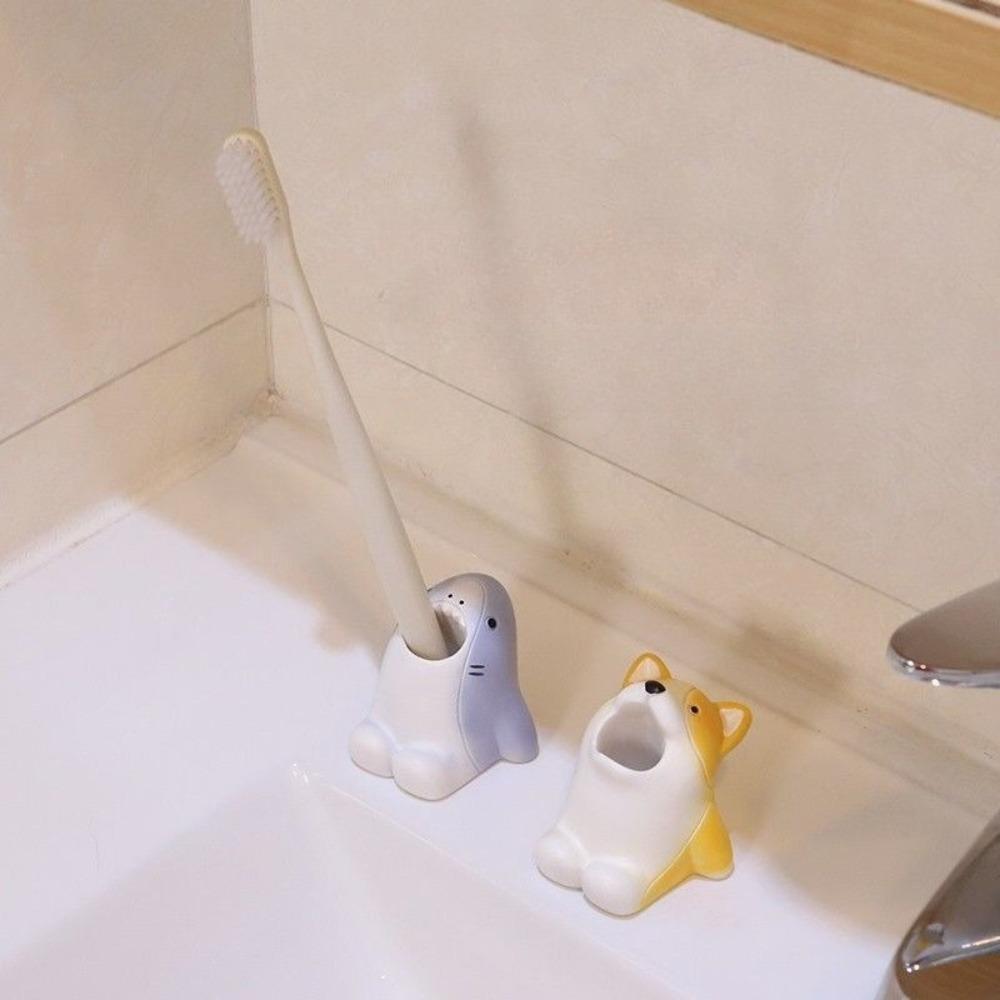 Cute Cartoon Animal Toothbrush Holder Corgi Shark Stand for Makeup Brushes Stationery Bathroom Countertop Organizer Decor