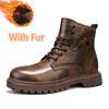 New Motorcycle Boots Casual Leather Men Walking Boots All-match Man High Top Shoes Brand Men Winter Plush Snow Boots