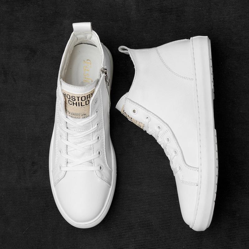 Fashion British Style Trendy Men's High Top Leather Shoes Simple Beige Massage Sole Men's Business Casual Shoes Winter Cotton Shoes