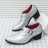 Fashion Fashion Men's Pointed Silver Green Monk Strap Loafter Leather Casual Shoes Male Formal Wedding Dress Homecoming Zapatos Hombre