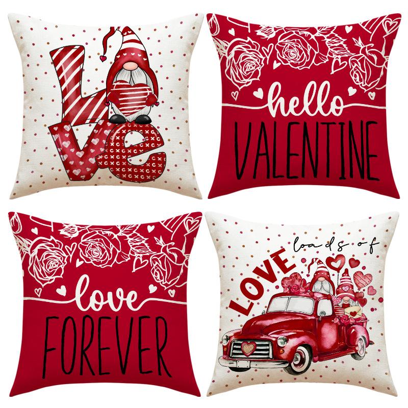 Valentine's Day Pillow, Simple and Versatile Combination Set, Pillow Cover, Red LOVE Letter Printed Sofa Pillow