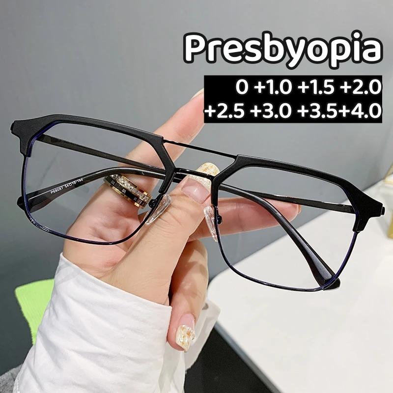 Large Frame Double Beam Reading Glasses Ultra Light Square Men's Glasses High Definition Anti Blue Light Presbyopia Glasses