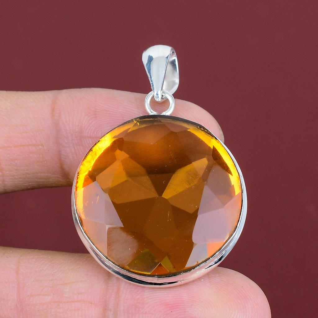 Faceted Citrine Pendant Genuine Gemstone Pendant 925 Sterling Silver Pendant Citrine Jewelry Handmade Pendant Gifts for Women Silver Jewelry