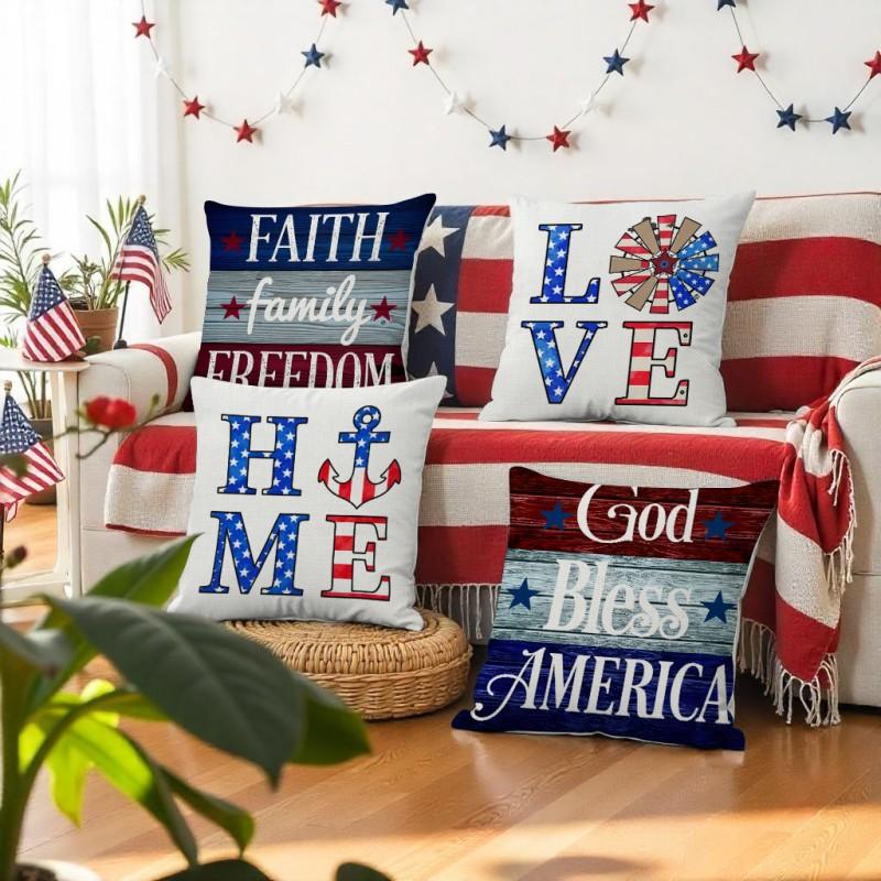 Summer Independence Day Series Throw Pillow Cases Linen Print Living Room Sofa Decorative Cushions