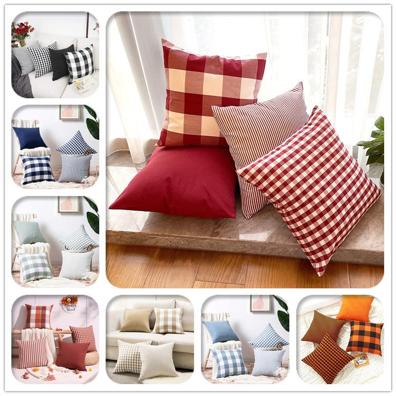 Simple Plain Plain Striped Plaid Pillow Case Sofa Cushion Cover Car Cushion Cover