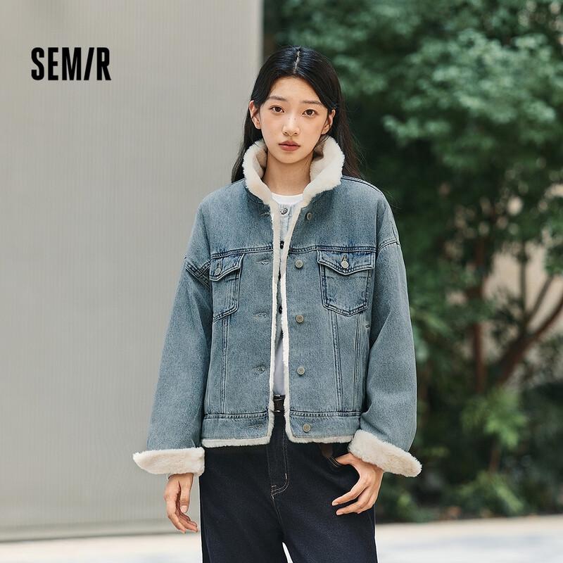 Semir Women's Loose Fit Padded Denim Jacket with Faux Fur Collar
