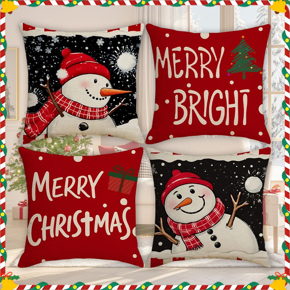 Christmas Snowman Printed Throw Pillow Cover Linen Christmas Sofa Decoration Bedroom Bedside Pillow Cover Cushion Cover