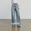 Chuyu Women's 2025 Autumn Street Style Ripped Wide-Leg Jeans