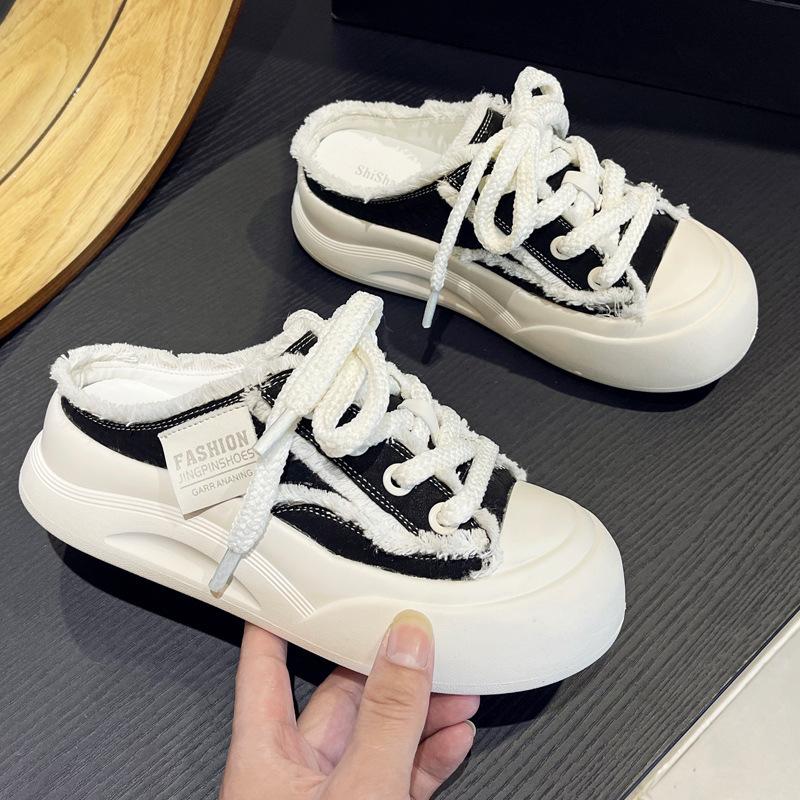 Women's Canvas Half Slippers Breathable Casual Sneakers for Women Platform Vulcanize Shoes Comfort Slip On Loafers Zapatos Mujer