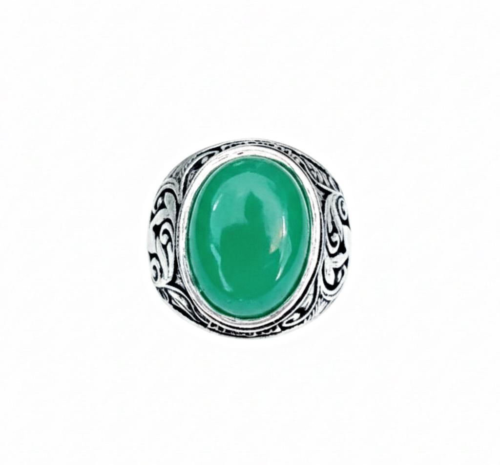 Green Onyx Signet Ring, 925 Solid Sterling Silver, Handcrafted Oval Cut Gemstone Ring