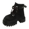 Women Autumn Winter Leather Ankle Boots 9CM Chunky Heels Motorcycle Boots Woman Thick Bottom Lace-up High Platform Short Booties