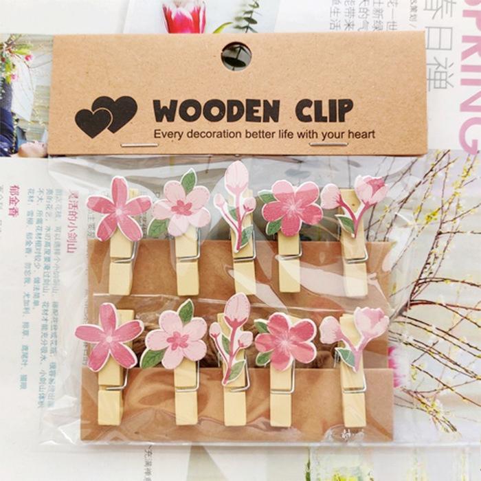 Flowers Peach Blossom Kindergarten Hanging Photos Wall Flower Shop Floral Art Cards Small Wooden Clips