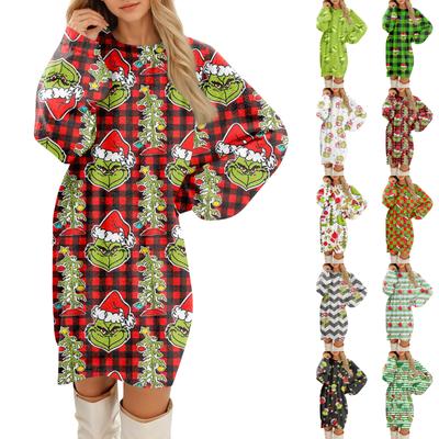 Women's Fashion Casual Christmas Print Round Neck Long Sleeve Dress