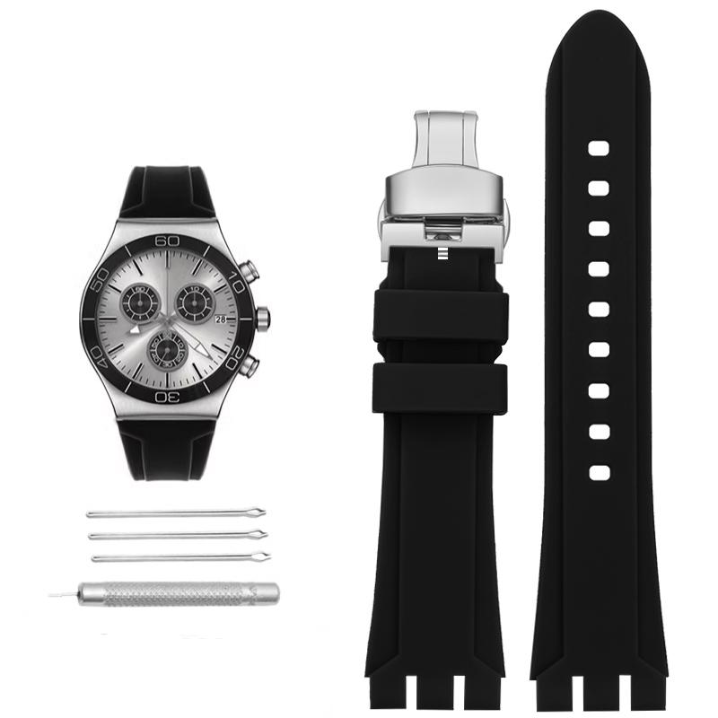For Swatch Watch Band YVS423 YCS YAS YGS Men's Concave Mouth Silicone Watch Chain Braclet Waterproos Sprots Watchband 19 21mm