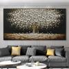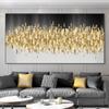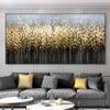 Abstract Leaves Oil Painting Print On Canvas Texture Golden and Silver Trees Wall Art Modern Home Decor Living Room Wall Decor