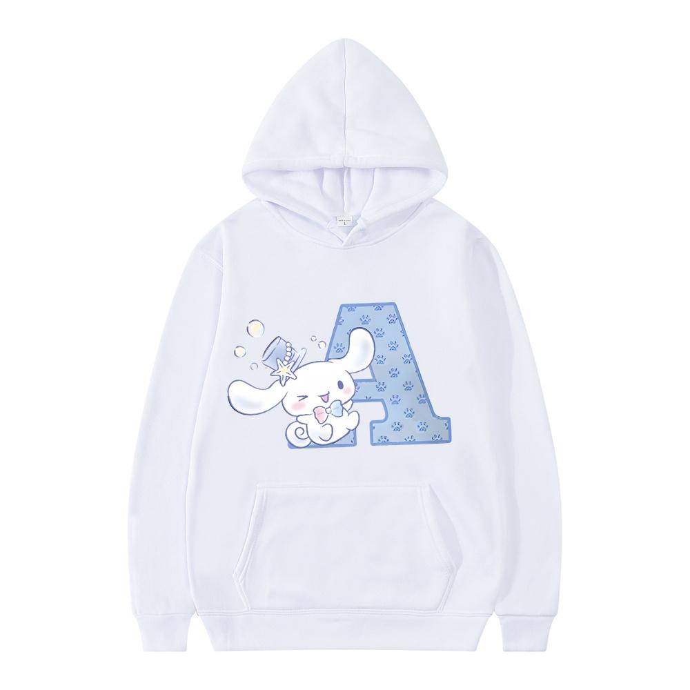 New Sanrio Cinnamoroll Woman and Men White Hoodies Letter A B C D Sweatshirts Clothes Kawaii Pullover Anime Cartoons Casual Tops