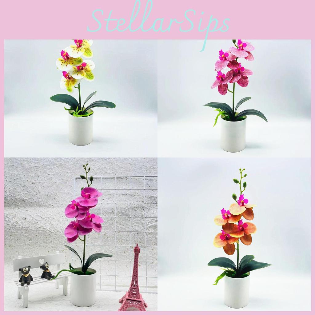 This artificial orchid plant features a 3D-printed design crafted from soft PVC material, measuring approximately 14.6 inches in height . Its realistic appearance enhances home or office decor, bringing natural beauty indoors. Ideal for desktop displays, table centerpieces, or event decorations. Wipe clean with a damp cloth for maintenance.