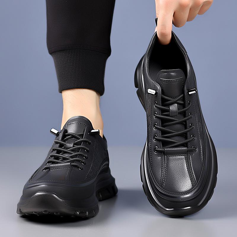 Leather Men's Walking Shoes Thick Bottom Handmade Skate Shoes Men Luxury Brand Lace-Up Mens Sneakers Outdoor Male Flats