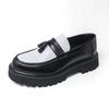 Korean Style Black and White Color Blocking Surface Thick Bottom Tassels Casual Slip On Non-slip Fashionable Men's Loafer Shoes
