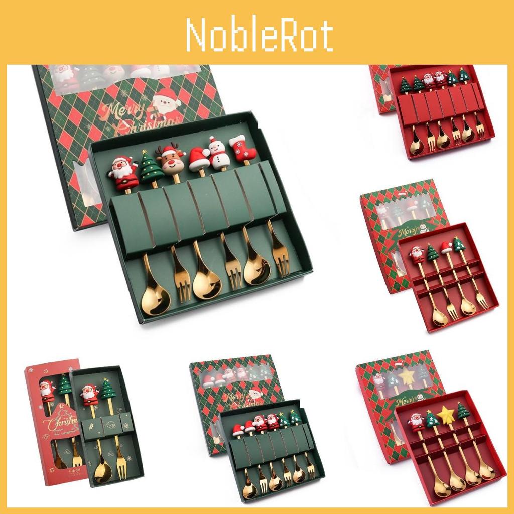Christmas Spoon Fork Set Utensils Dessert Stainless Steel Xmas Party Gift Decor