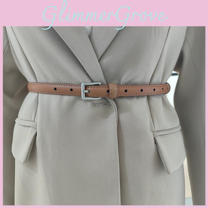 Square Buckle Solid Color Leather Thin Waist Belts Fashionable Gifts Casual