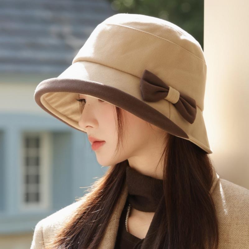 Autumn and Winter New Basin Hat Bow Bucket Hat Bucket Hat Windproof Thick Warm Hat for Skiing, Running, Cycling