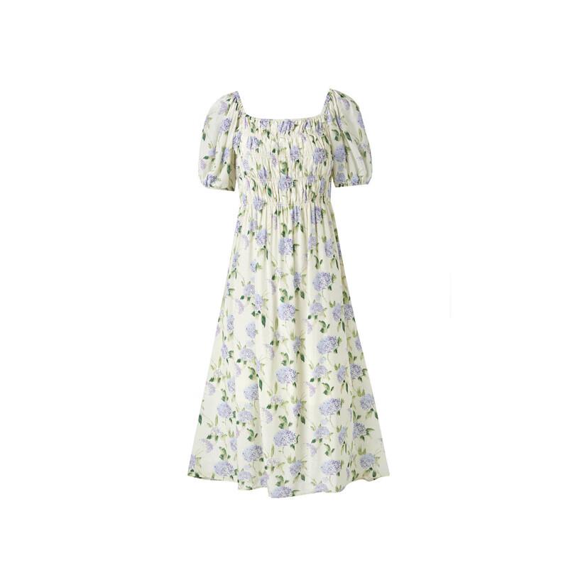 PEACEBIRD Women's Floral Puff Sleeve Square Neck Dress