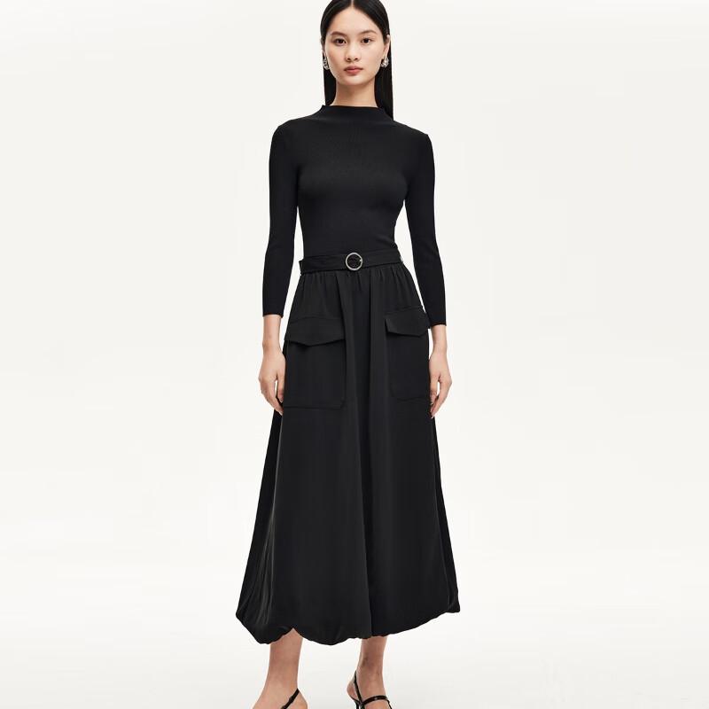 Veromoda 2024 Early Autumn Knitted Patchwork A-Line Black Dress