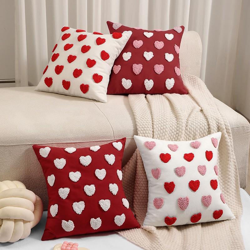 Love Cute Valentine's Day Polyester Cotton Tufted Loop Velvet Three-dimensional Pattern Pillow Back Cushion Single and Double Color Pillow Cases