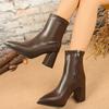 2025 New Vintage Pointed Toe Women Ankle Boots Shoes Autumn Winter Square Heels Short Booties Zapatos Mujer