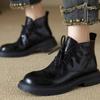 New Autumn Winter Women's Boots 2025 Genuine Casual Women Shoes Round Toe Chunky Heel Lace Up Riding Ankle Boots