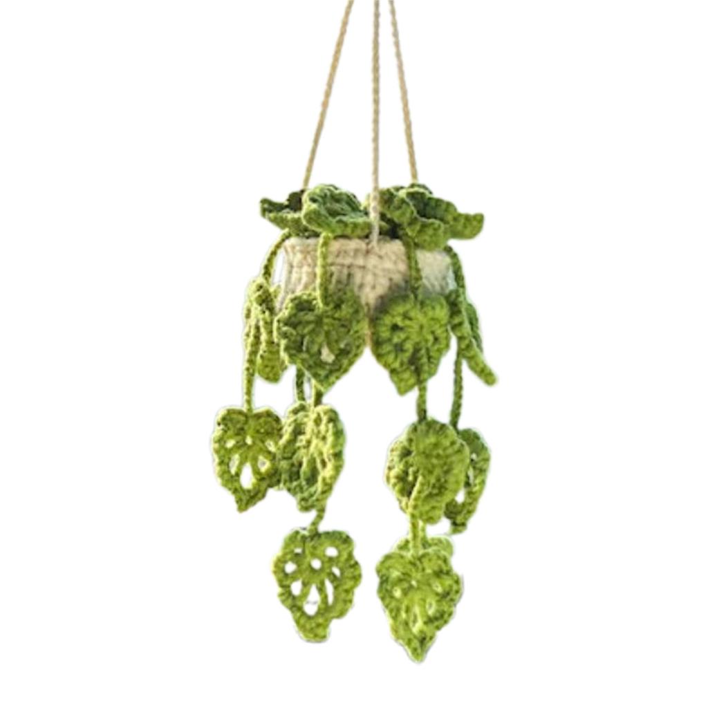 Plant Hangers Kit Mini Hand Knitted Car Rear View Mirror Decoration Accessories for Home Countyard Garden Decor Ornament